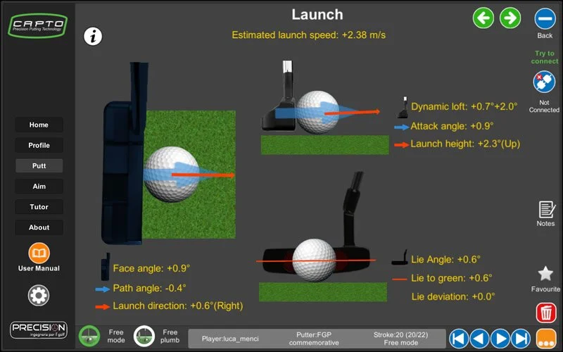 CAPTO offers putting analysis in real time. It's cutting edge technology gives detailed accurate and reliable putting parameters for complete analysis.